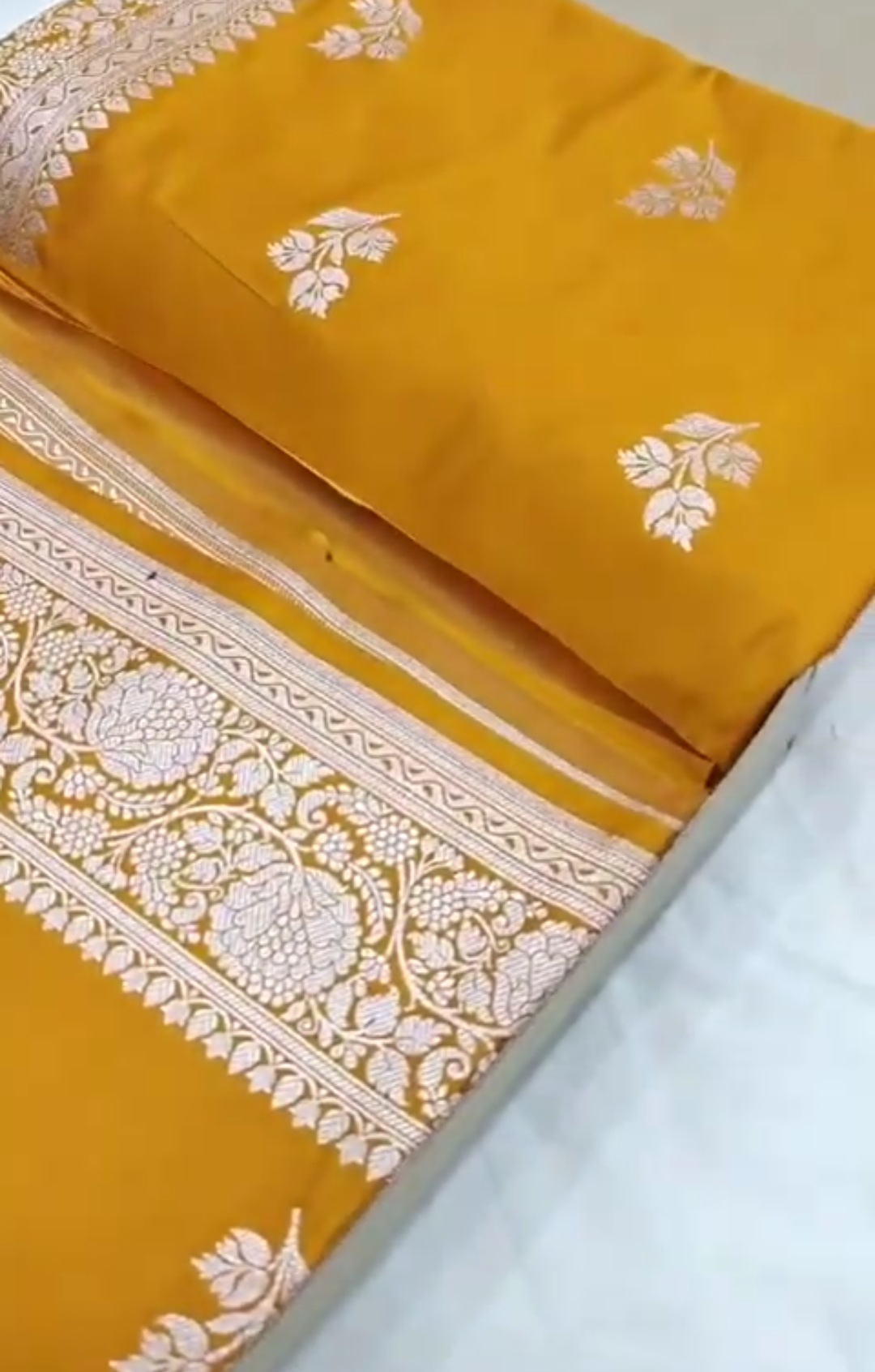 Turmeric Banarasi Mashru Soft Silk Saree