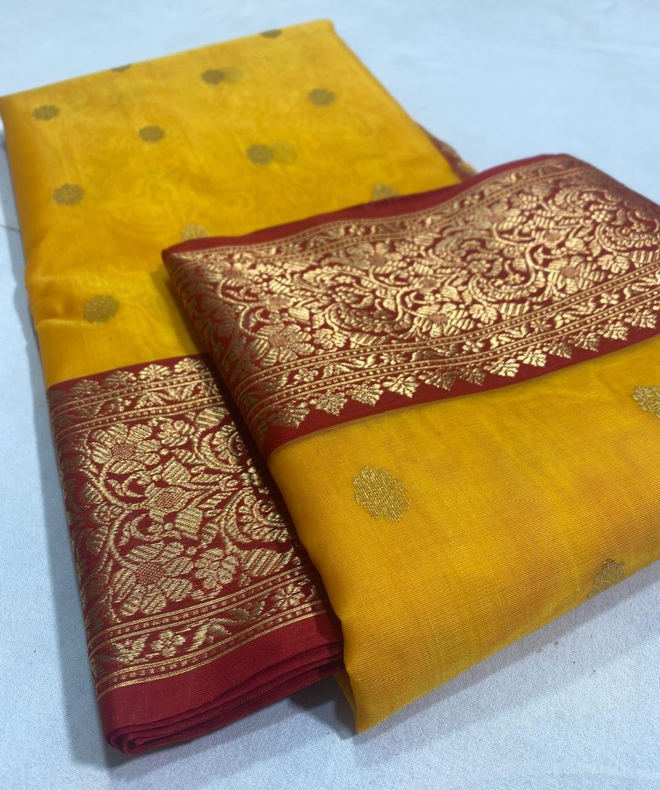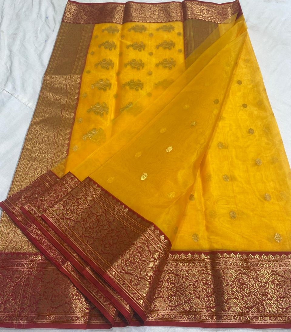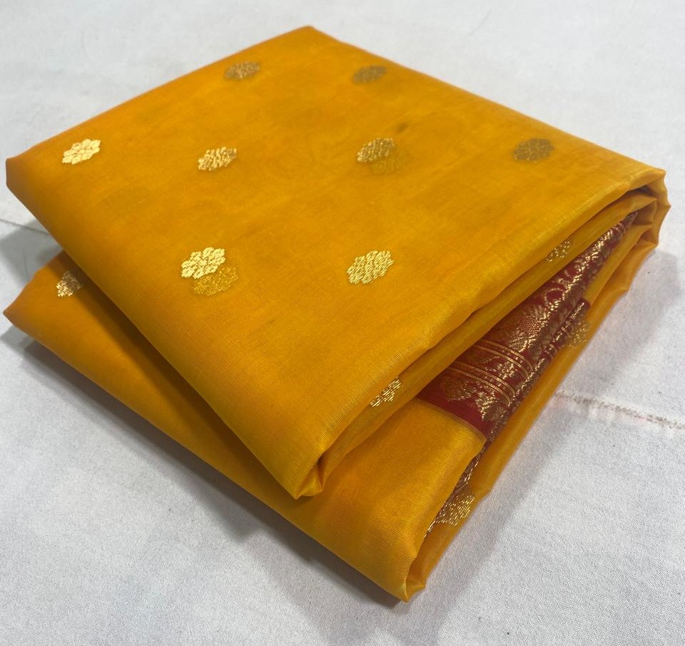Turmeric Yellow Chanderi Handloom Katan Silk Saree