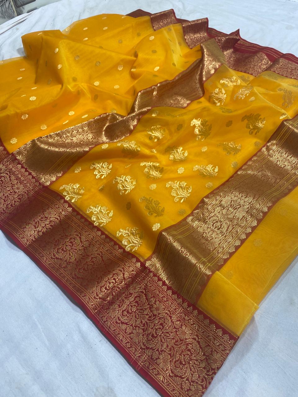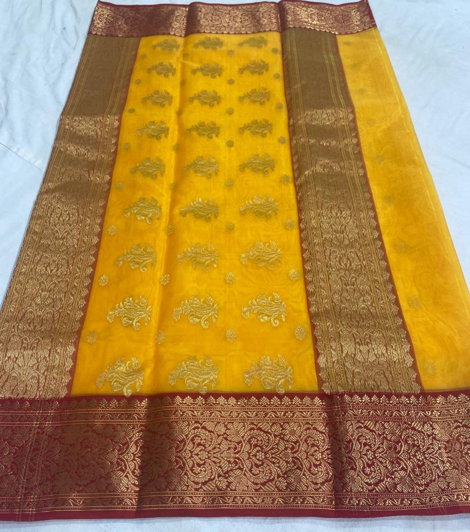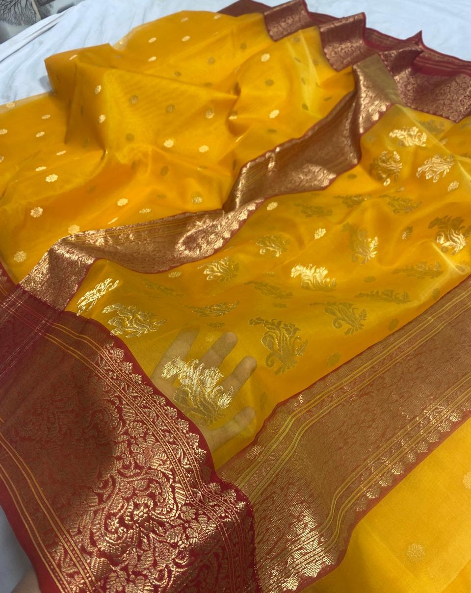 Turmeric Yellow Chanderi Handloom Katan Silk Saree