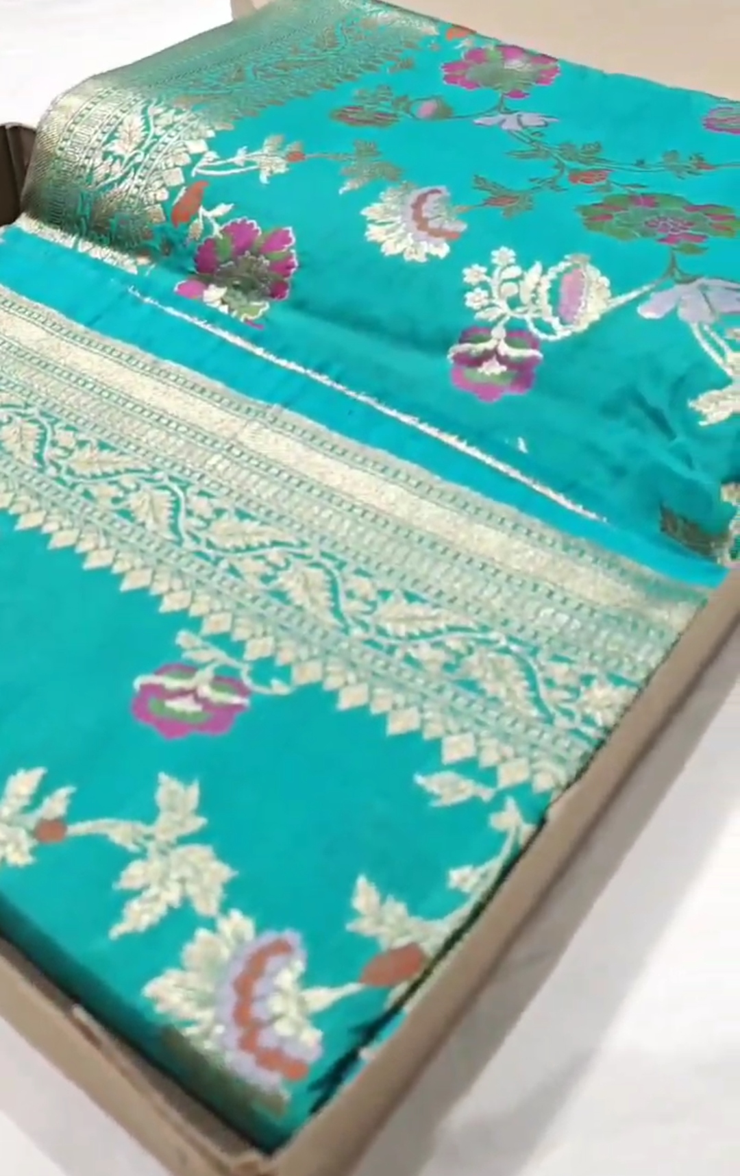 Turquoise Banarasi Semi Katan Silk Sona Rupa Saree