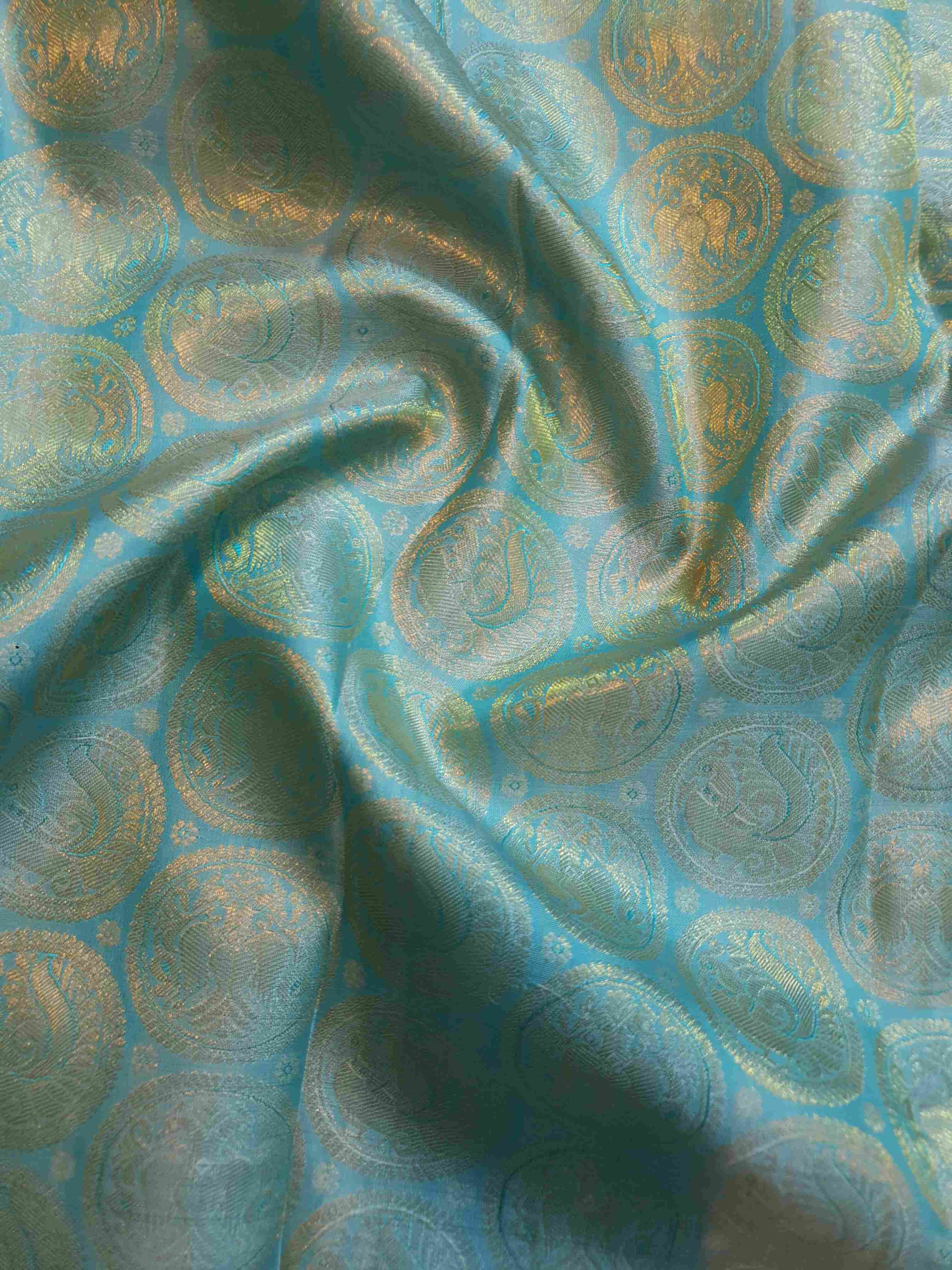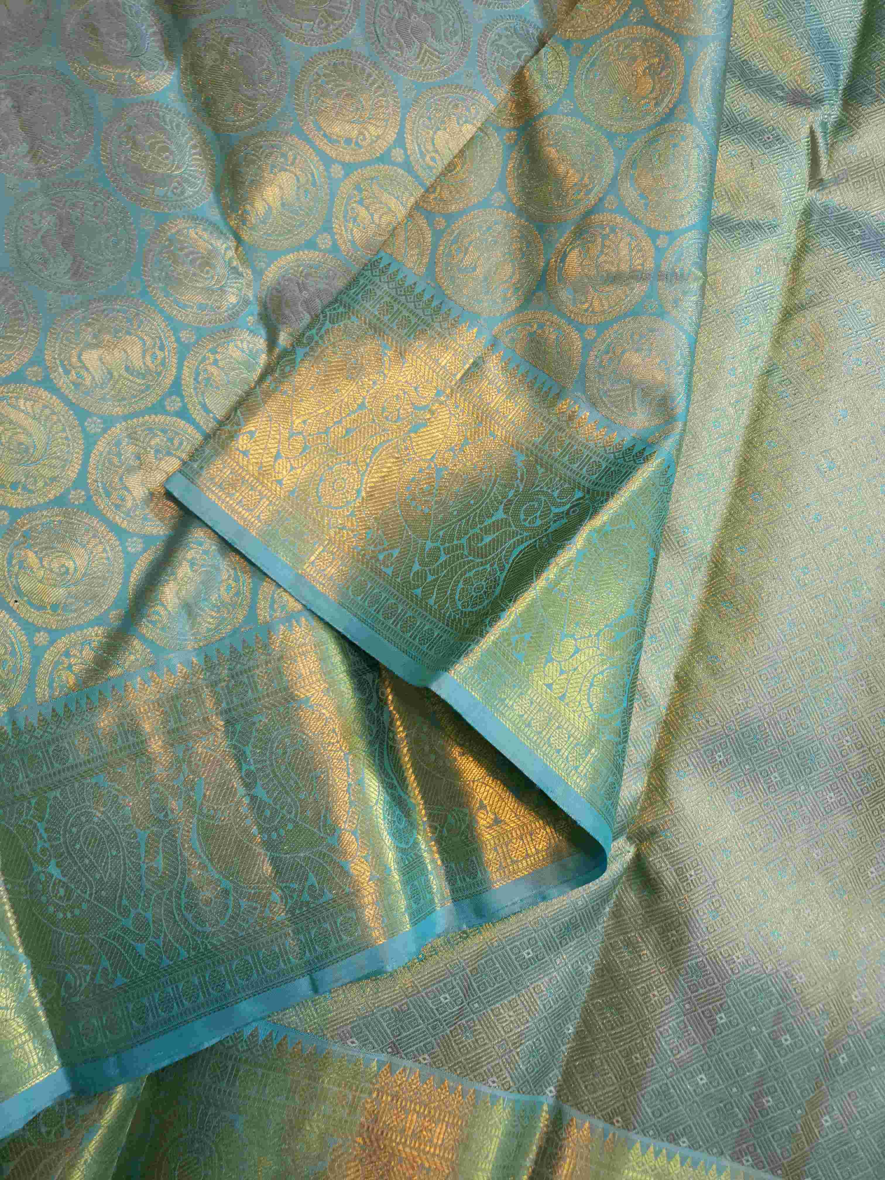 Turquoise Kanchipuram Handloom 2G Gold Pattu Silk Saree