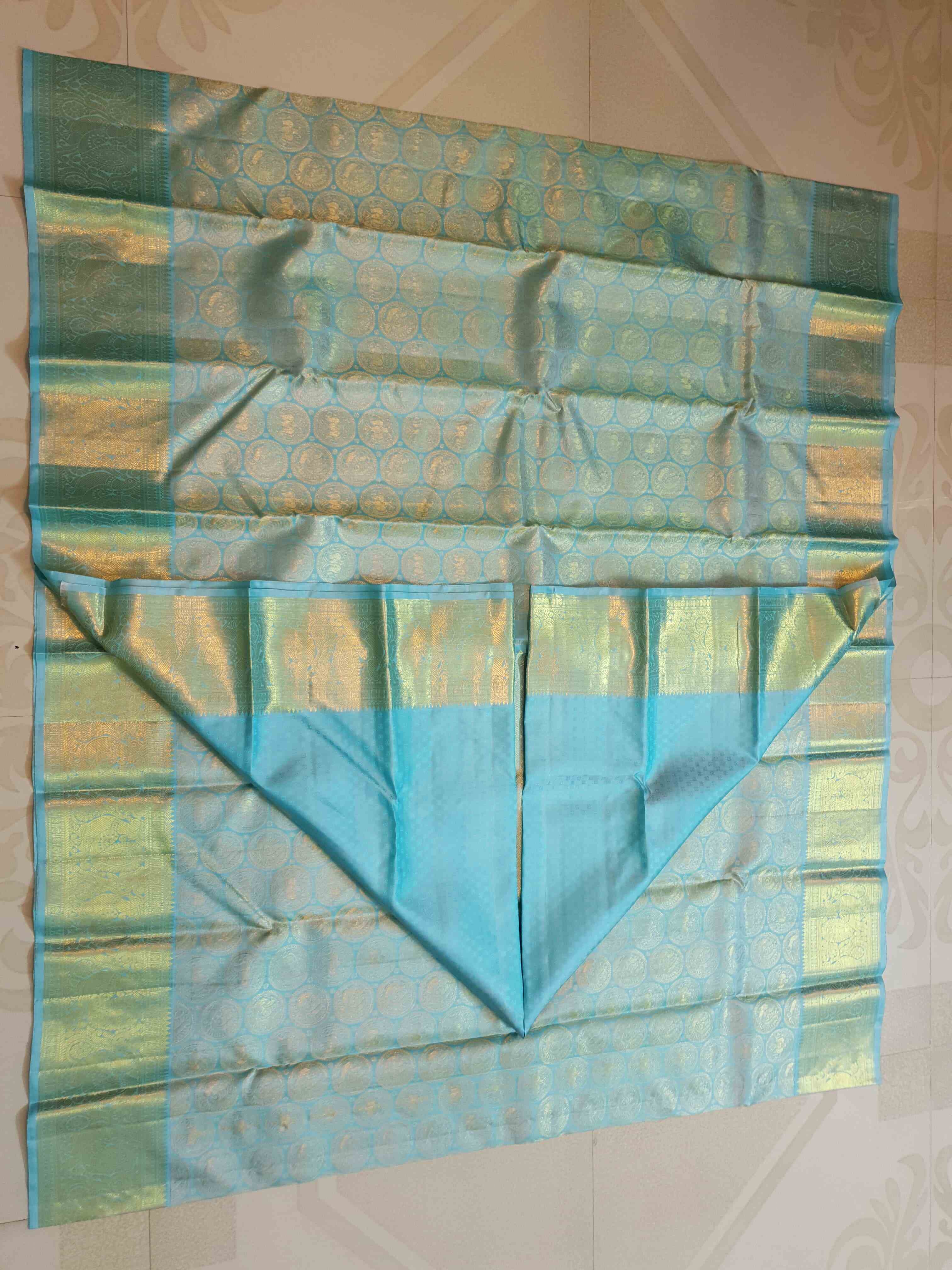 Powder Blue Kanchipuram Handloom 2G Gold Pattu Silk Saree