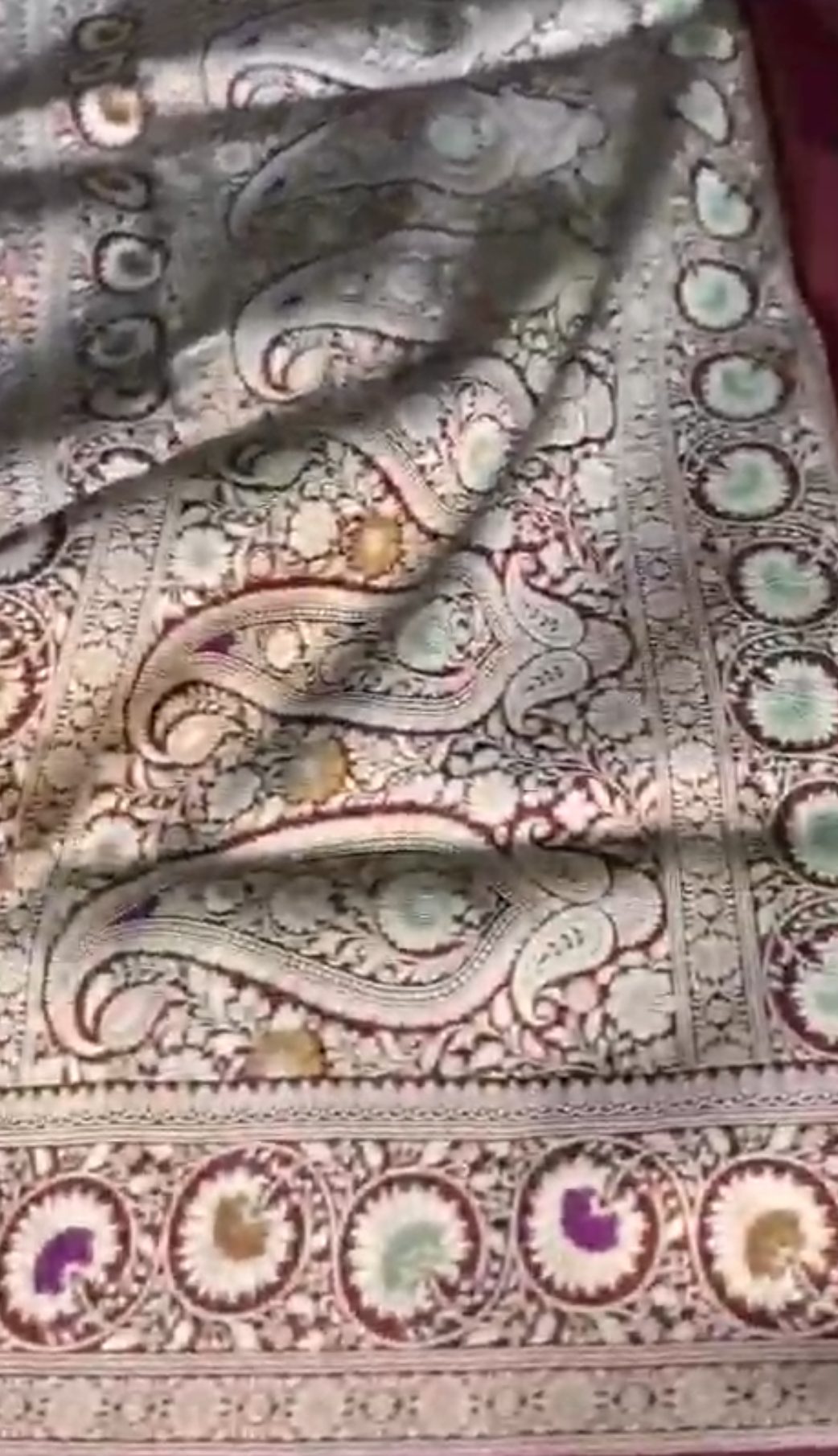 Wine Banarasi Handloom Katan Silk Meenakari Saree