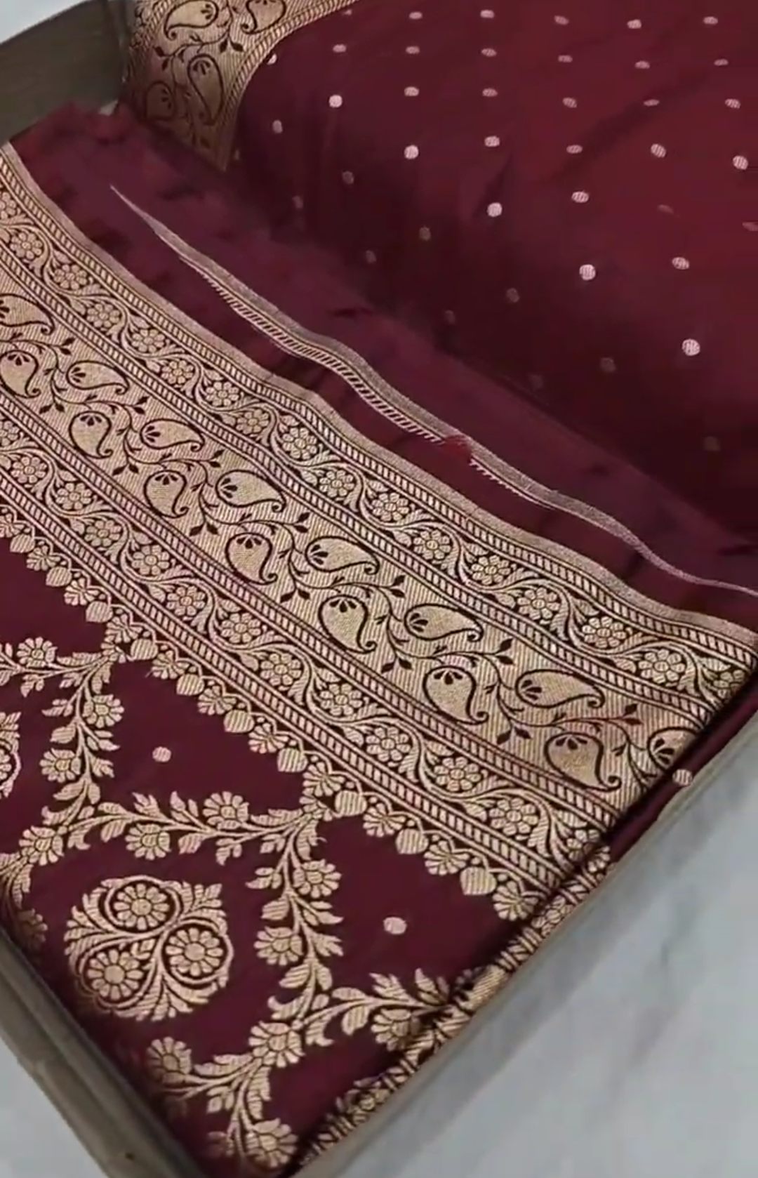 Rustic Red Banarasi Mashru Soft Silk Saree