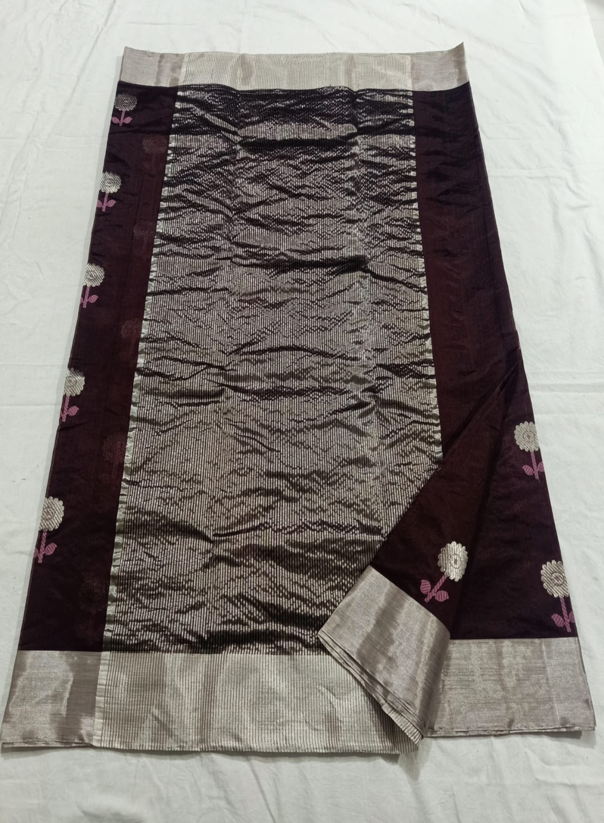 Wine Chanderi Handloom Pattu Silk Meenakari Saree