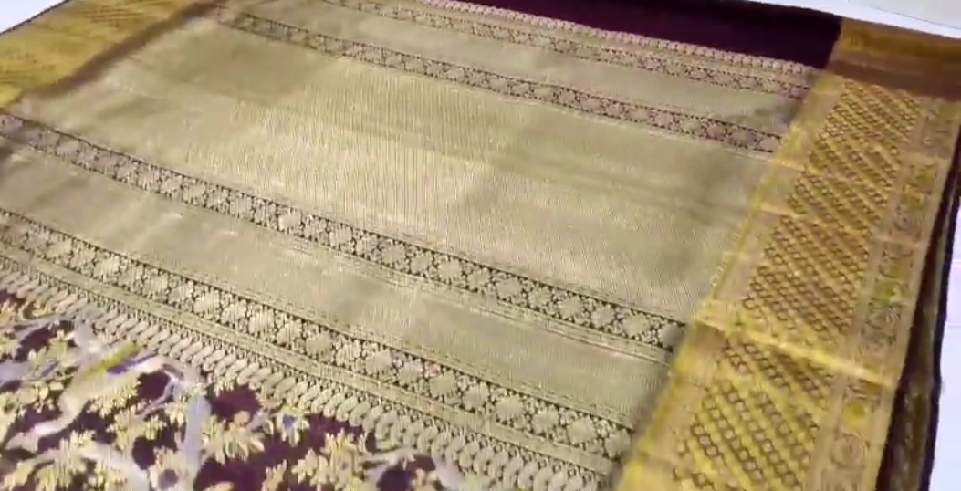 Gold Kanchipuram Handloom Tissue 1G Gold Brocade Silk Saree