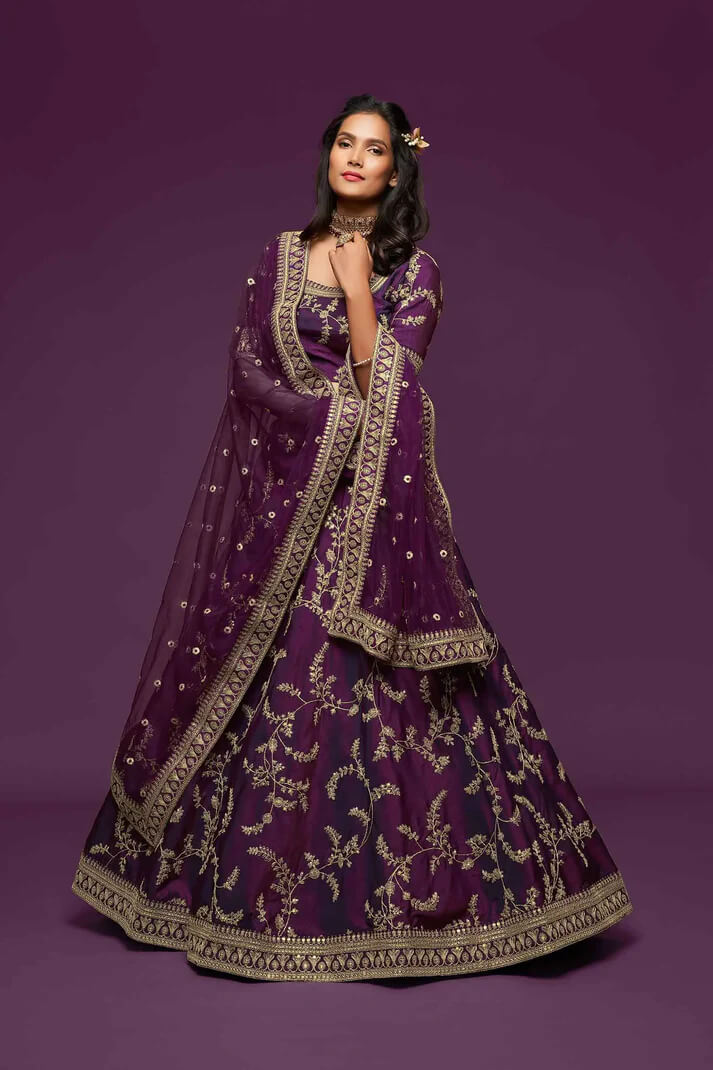 Wine Silk Lehenga with Thread, Zari & Sequins Work